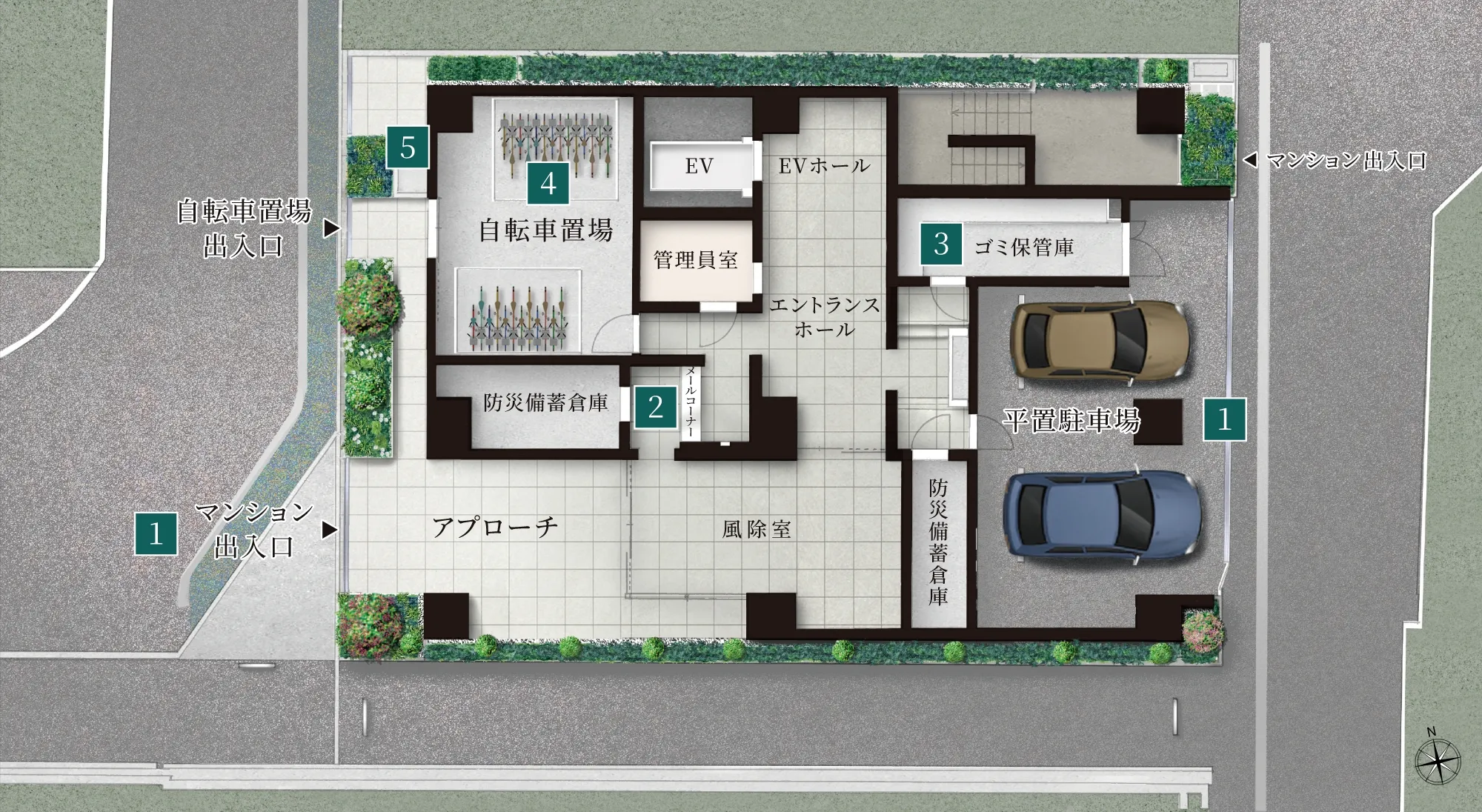 ※掲載の外観完成予想CG・エントランス完成予想CG・内廊下完成予想CGは計画段階の図面を基に描き起こしたもので、形状・色等は実際とは異なり、今後施工上の理由等により計画に変更が生じる場合があります。なお、植栽は樹形、枝ぶり、葉や色合いが異なる場合があり、特定の季節の状況、入居時期を想定したものではありません。